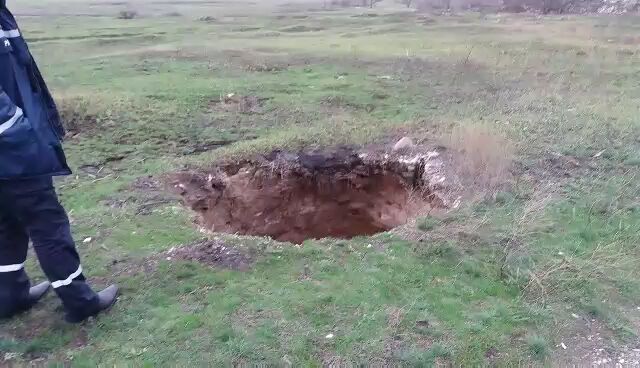 "По указанному адресу выехала оперативная группа 8-го Государственного пожарно-спасательного отряда. Как стало известно, на месте происшествия произошел обвал земли диаметром 3 м и глубиной 15 м. Представители ГосЧС огородили участок обвала на площади 64 кв.м для обеспечения безопасности местного населения", - сообщили спасатели.