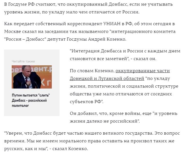 Только всё это не имеет значения — оккупанты не собираются уходить, и большинство вынуждено подстраиваться под ситуацию. Если бы это было по-другому, то депутаты Госдумы не несли чушь, что оккупированный Донбасс уже часть России. Хотя и здесь лукавят, говорят, что все «уже» Россия, кроме уровня жизни. И эту нищету они принесли в один из самых богатых регионов Украины.