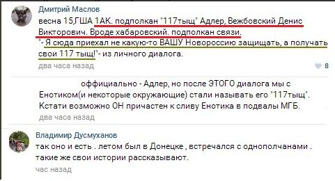 Так, в сообщении говорится о полковнике вооруженных сил РФ Денисе Вежбовского, предположительно из Хабаровского края. Пророссийские боевики рассказывают, что указанный полковник приехал на Донбасс за заработную плату в размере 117 тысяч рублей.