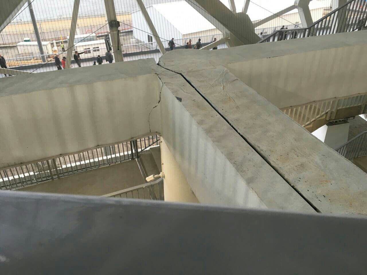 В минувшую субботу на объекте состоялся первый тестовый матч, однако уже сейчас болельщики призывают горожан не посещать опасное сооружение. Посетители "Арены-Волгоград" сделали снимок одной из конструкций, на котором видна трещина, идущая через всю несущую балку, пишет bzns.media со ссылкой на Волгоград News.